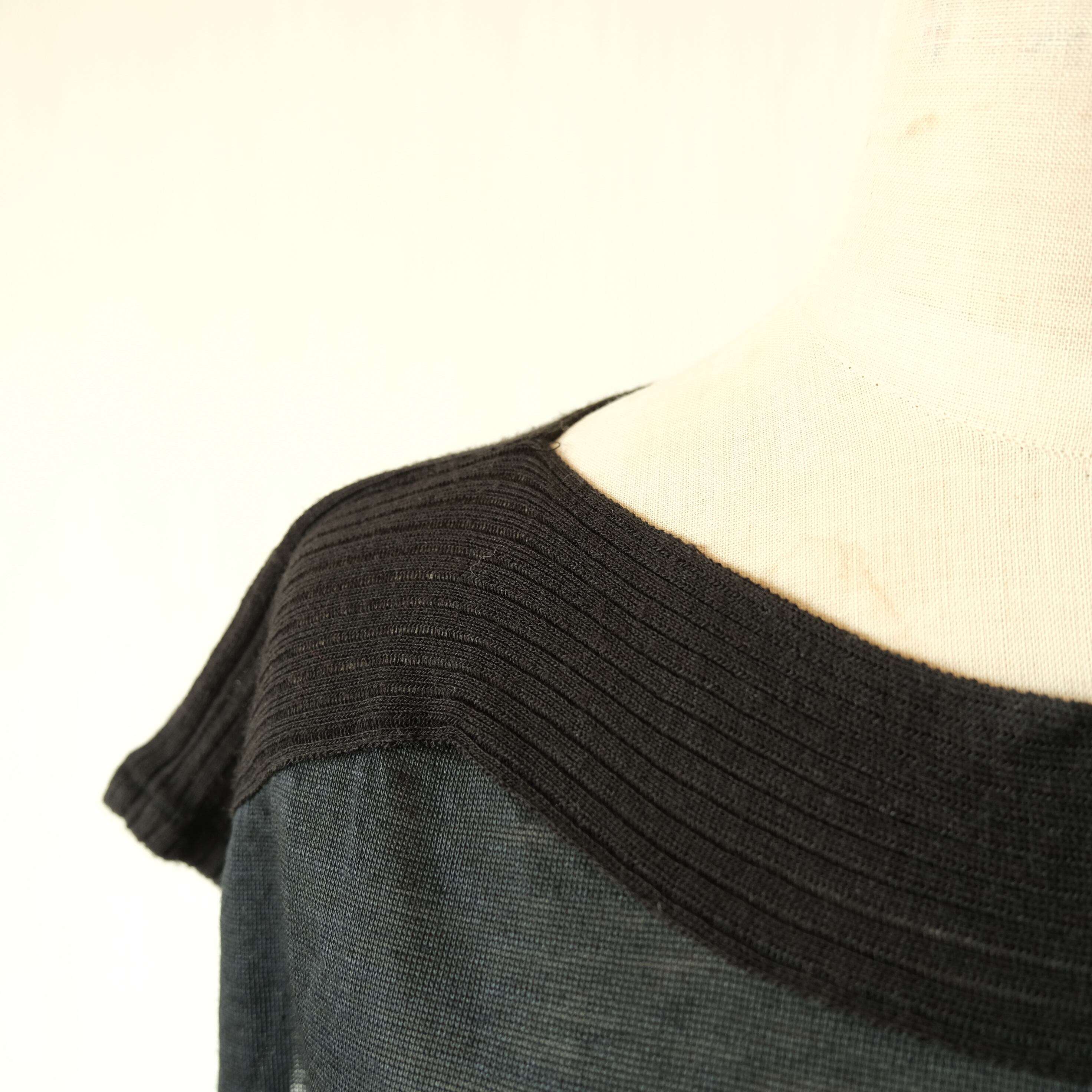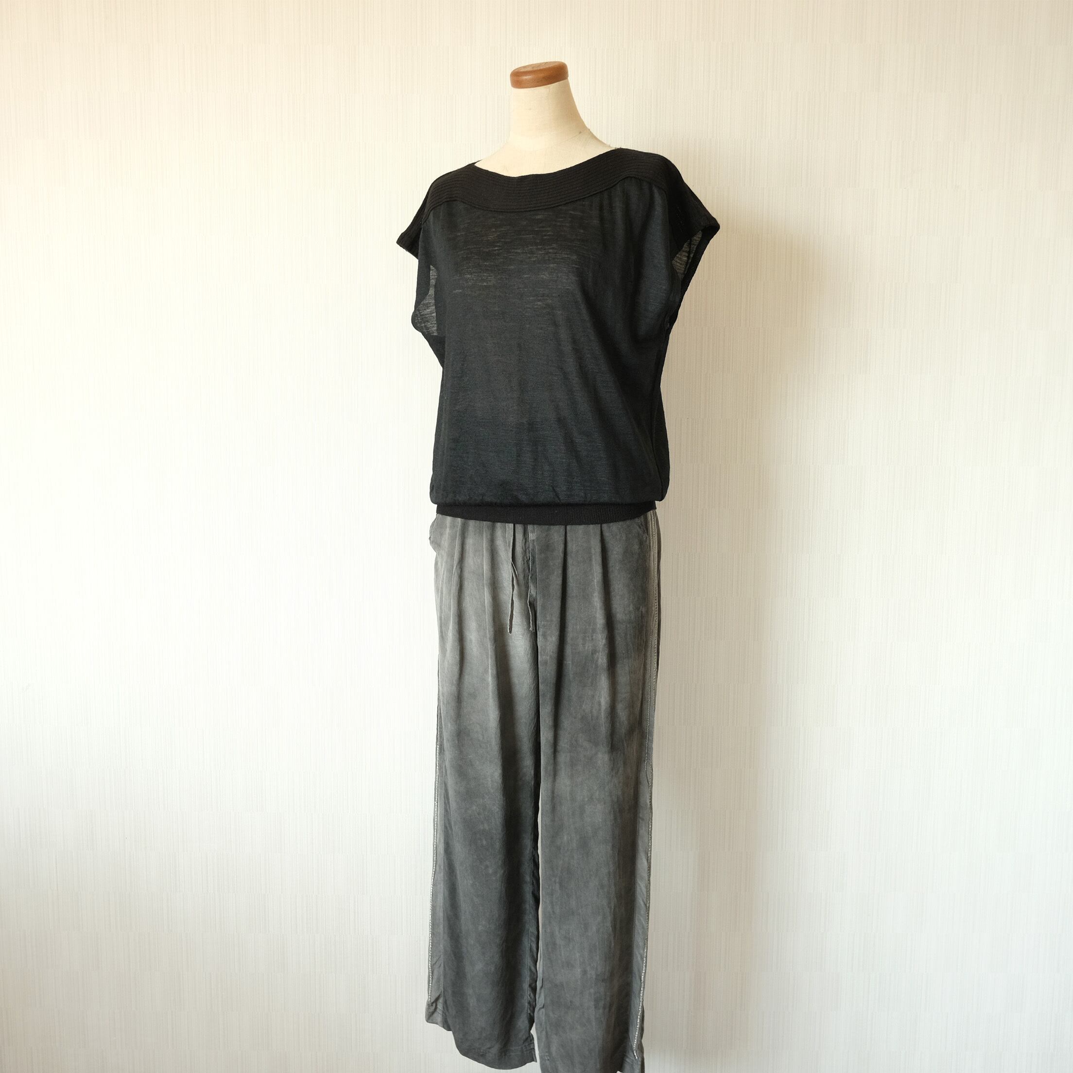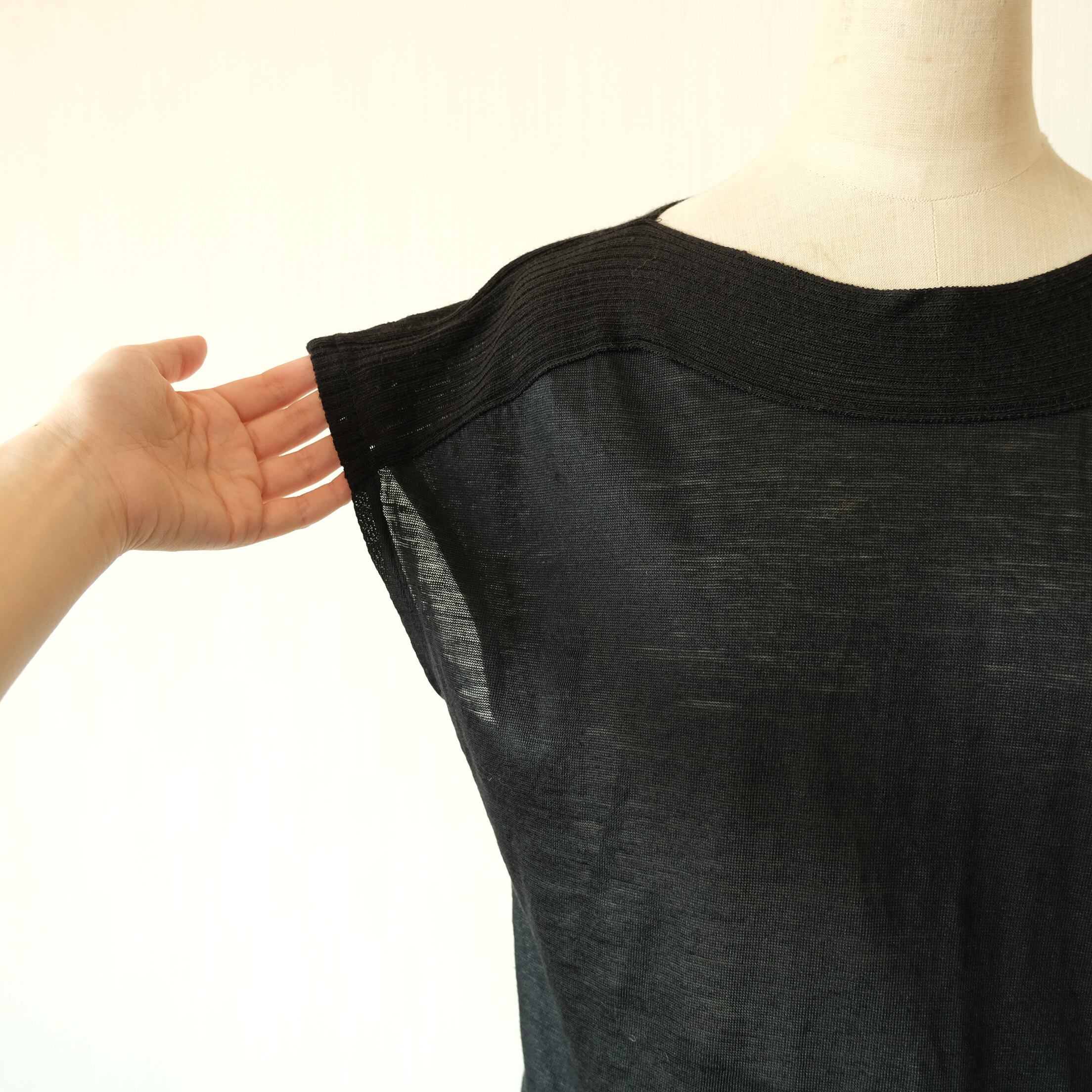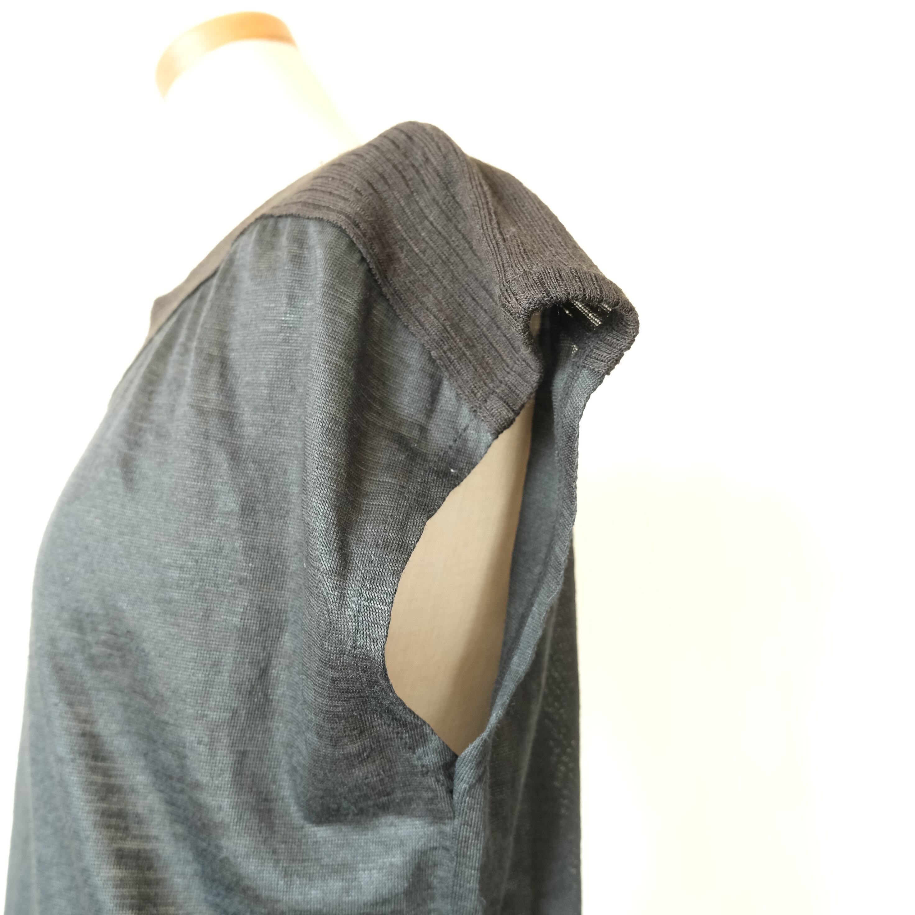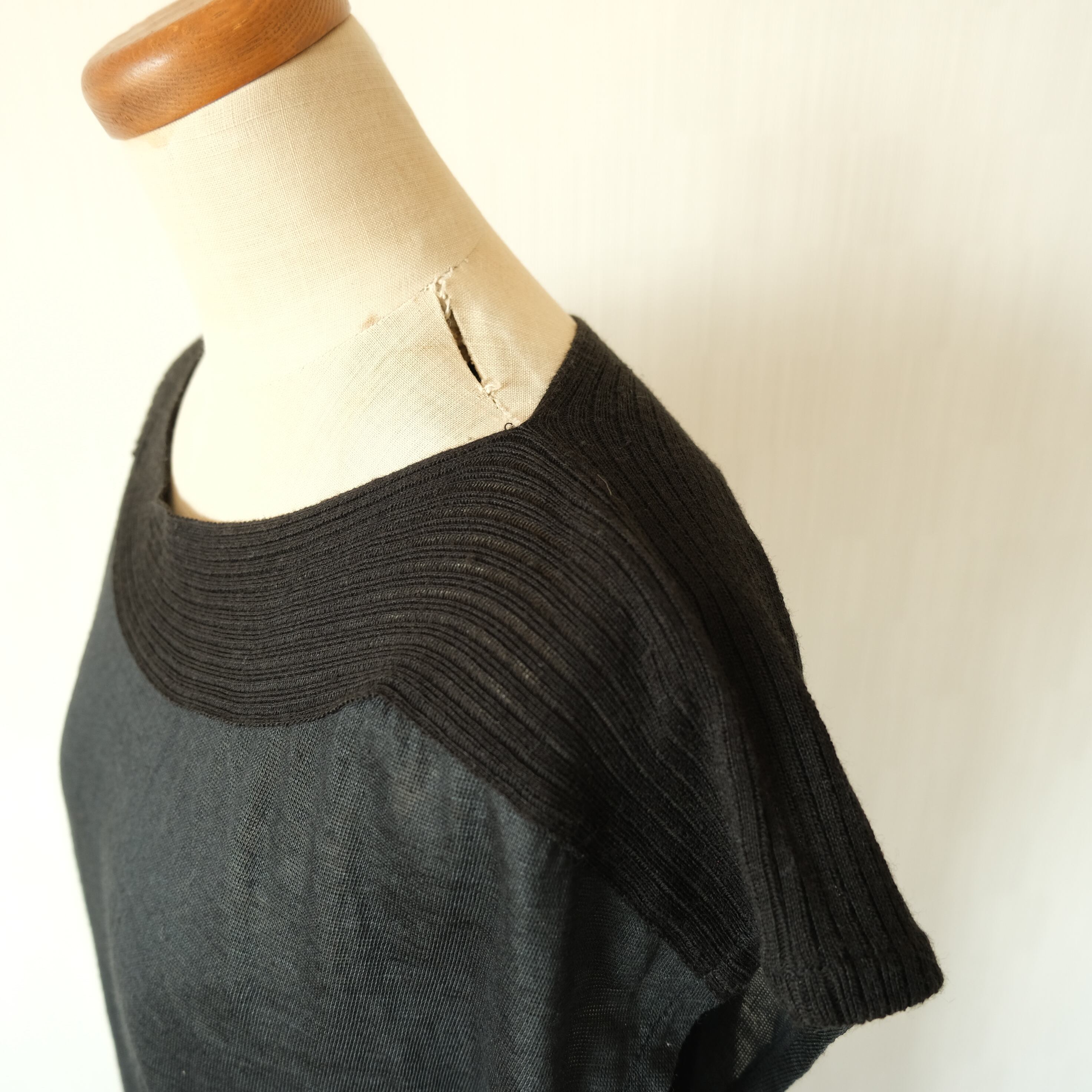 ○柔らかい手触りの薄手の麻とニット生地の異素材を組み合わせてあります